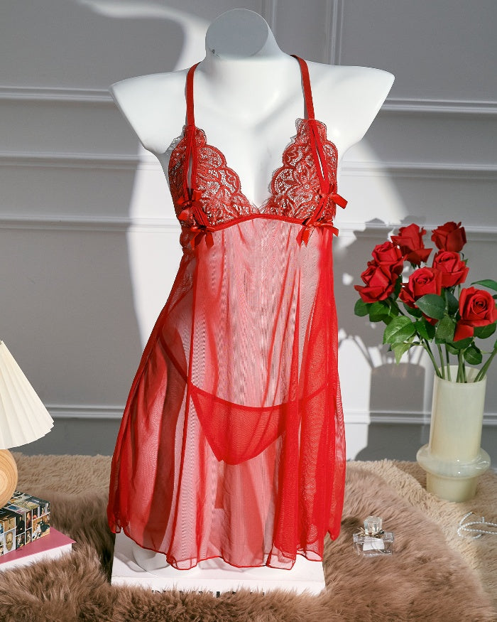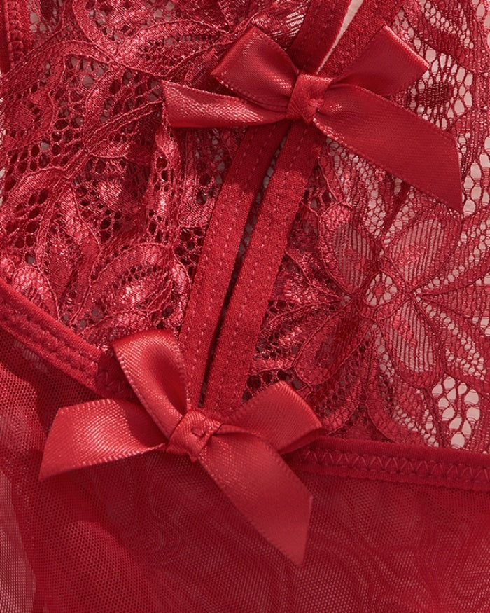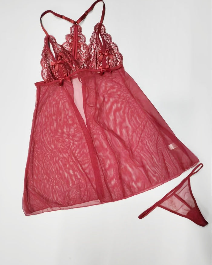 Ignite your confidence with this stunning red babydoll set! Crafted with luxurious lace detailing on the demi-cup bust and delicate satin bows, this set features a flirty sheer mesh skirt that drapes effortlessly over the matching lace thong. Ultra-soft stretch fabric contours to your curves while the vibrant crimson hue commands attention. Perfect for date nights or making every moment special – feel irresistibly chic and comfortable in premium lingerie designed to celebrate you.