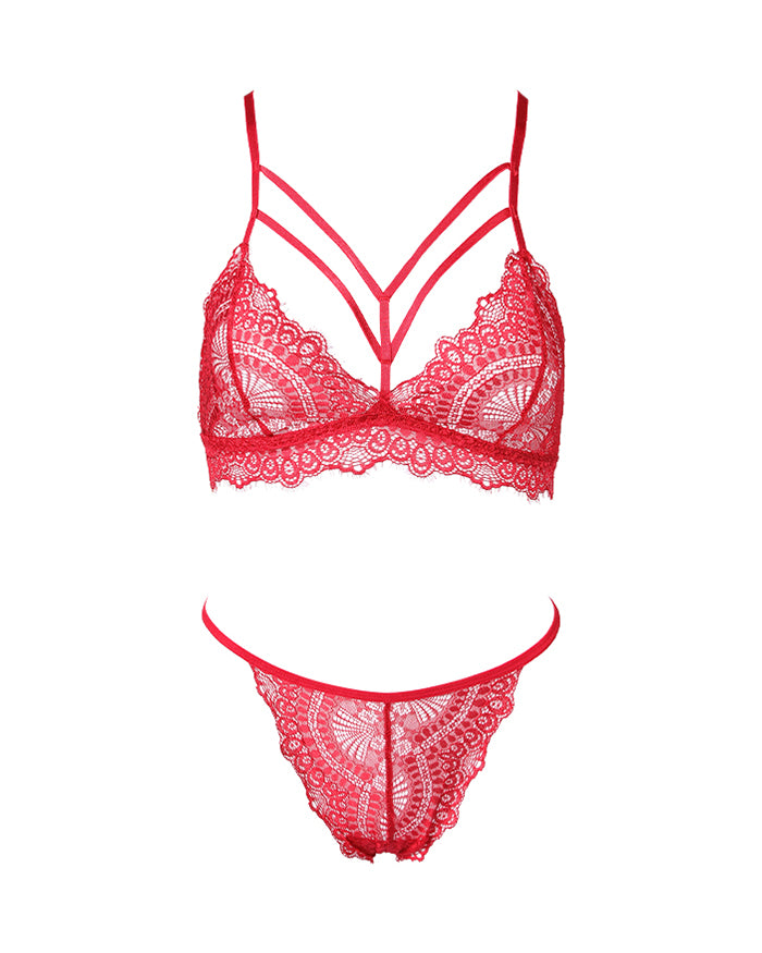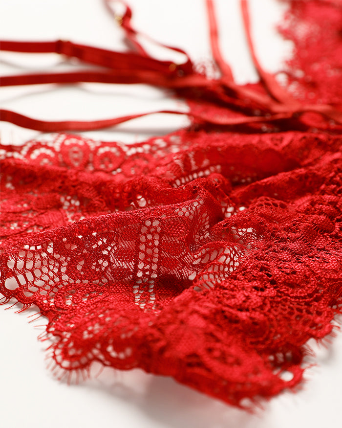 Embrace your silhouette in our Ruby Lace Set, where intricate floral lace meets effortless elegance. The bra features adjustable criss-cross straps for customizable lift, while the whisper-thin thong delivers seamless comfort under any outfit. Crafted from OEKO-TEX® certified stretch lace that moves with your body, this breathable set combines sensual details with everyday wearability – perfect for gifting or celebrating your confidence.