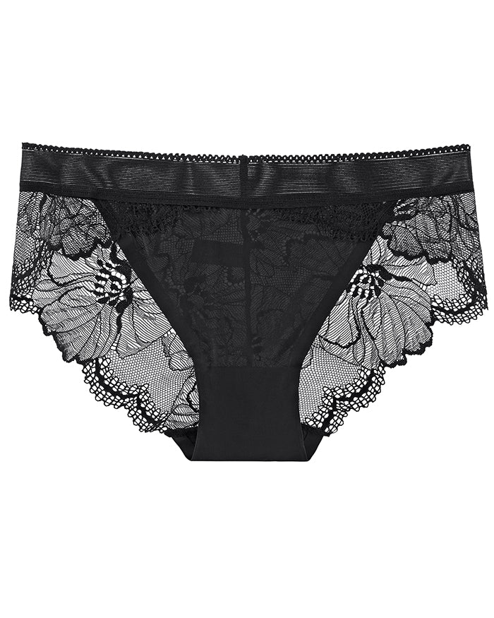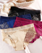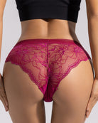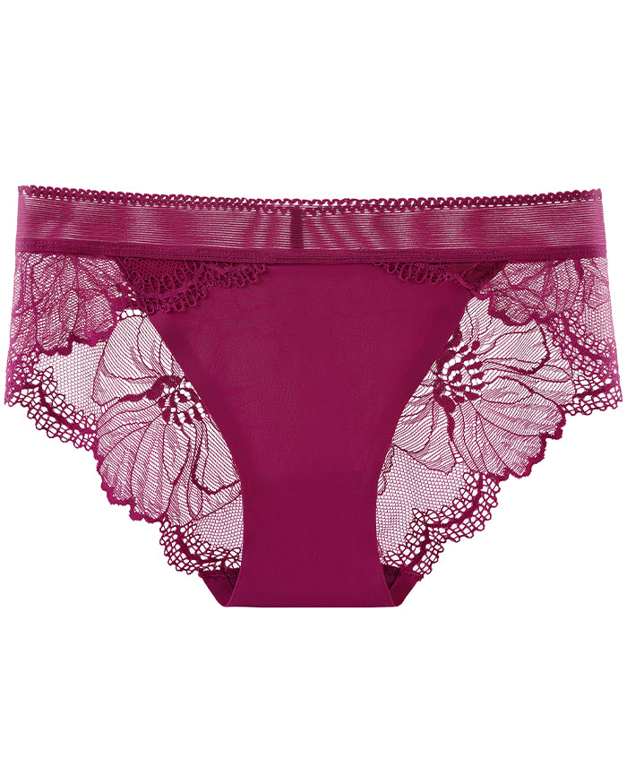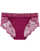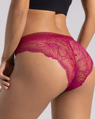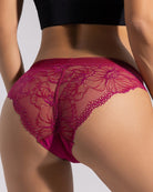 Feel effortlessly feminine in these vibrant fuchsia hipster panties. The intricate floral lace detailing along the back and sides offers a sensual touch, while the high-cut leg opening is designed to lift and flatter your curves. Made with a comfortable, stretchy waistband, these panties combine a sexy, cheeky look with all-day comfort for a confident feel under any outfit