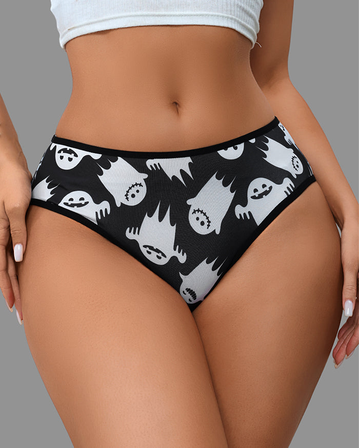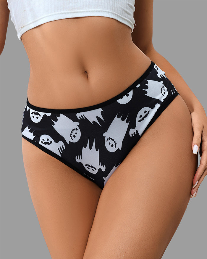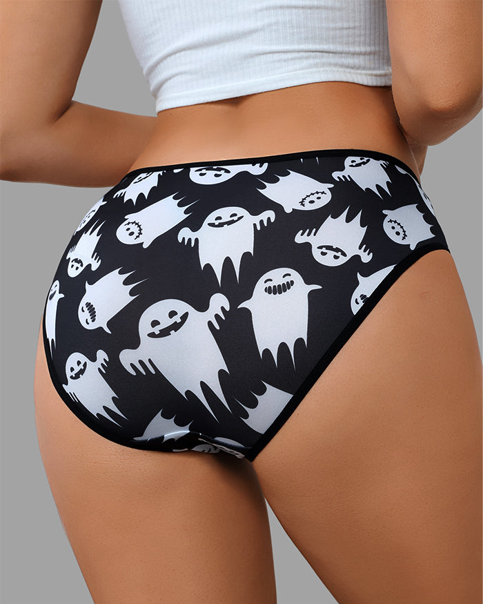 Add a touch of whimsy to your lingerie collection with these playful ghost-print panties! Designed with a classic bikini cut, these black panties feature adorable white ghost patterns, each with its own quirky expression for a spooky yet cute vibe.