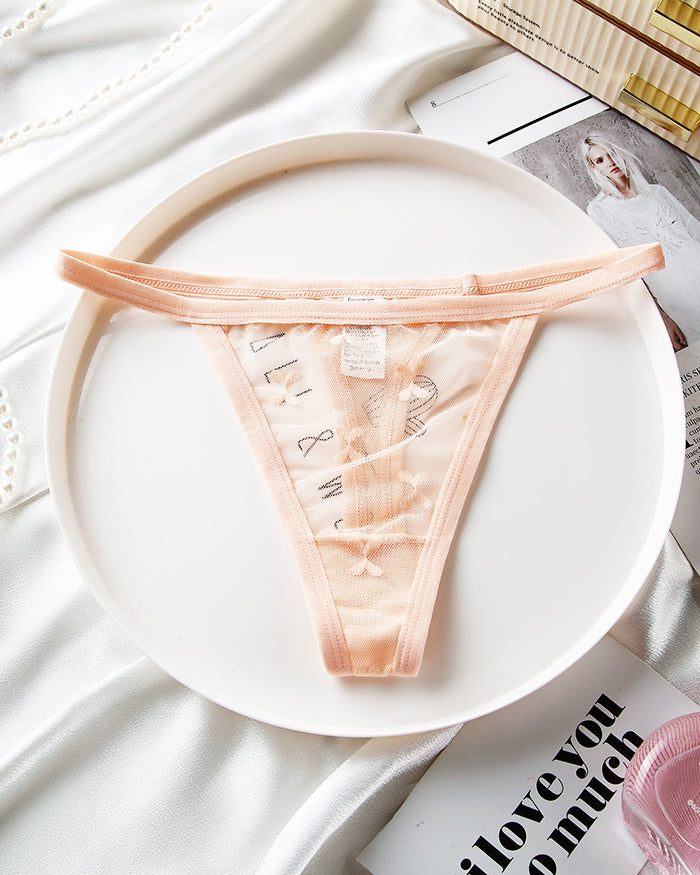 Subtle and sexy, this sheer mesh thong features a delicate bow accent at the back for a feminine finish. The ultra-light fabric and seamless edges provide a no-show fit, while the adjustable straps ensure customization. A must-have for discreet comfort with a hint of romance.