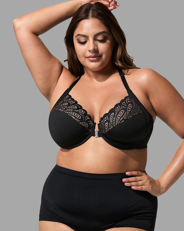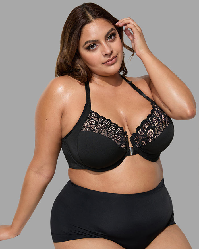 • Front closure design for easy wear - Supportive halter style tailored for plus sizes