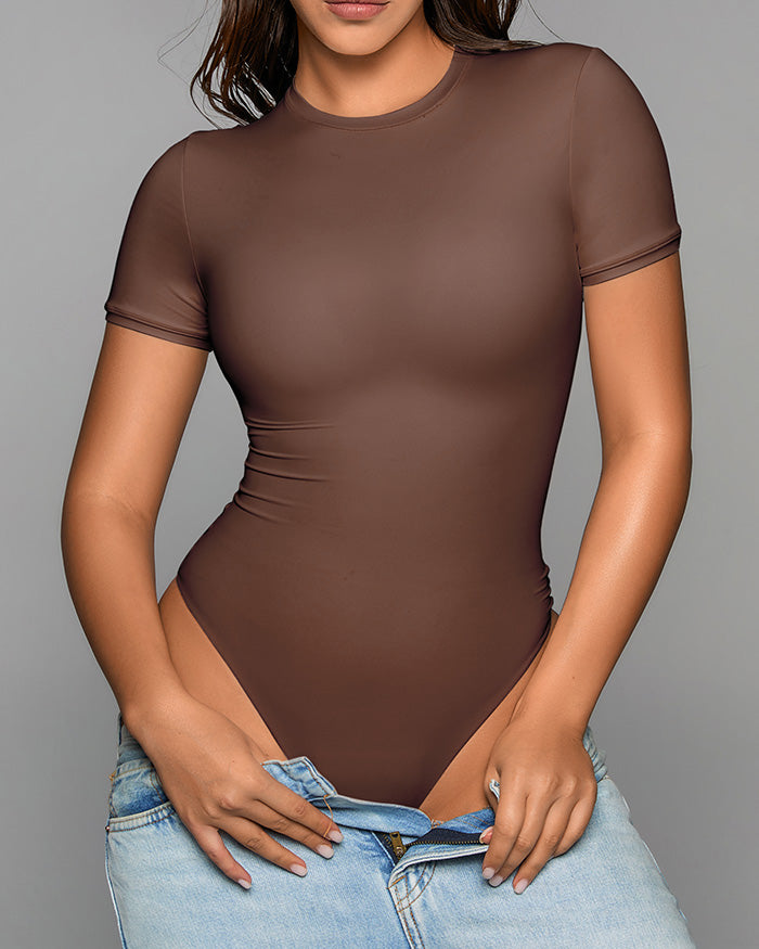 Boost your confidence with our Sculpting Seamless Shapewear Bodysuit.  Made from ultra-soft, stretchy fabric, this short-sleeve piece smooths your tummy and enhances curves.  Its seamless design stays invisible under clothes, while the lightweight material ensures all-day comfort.