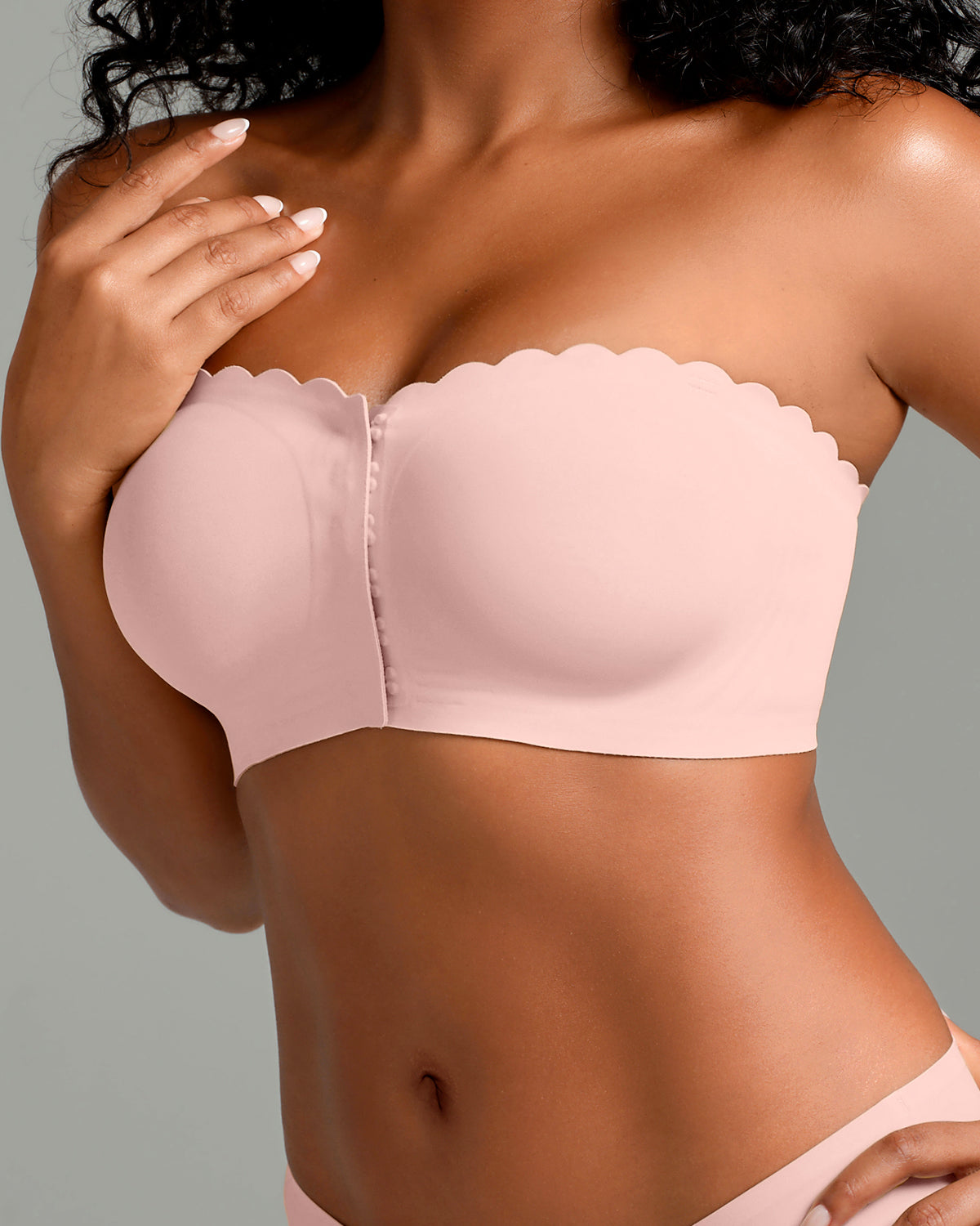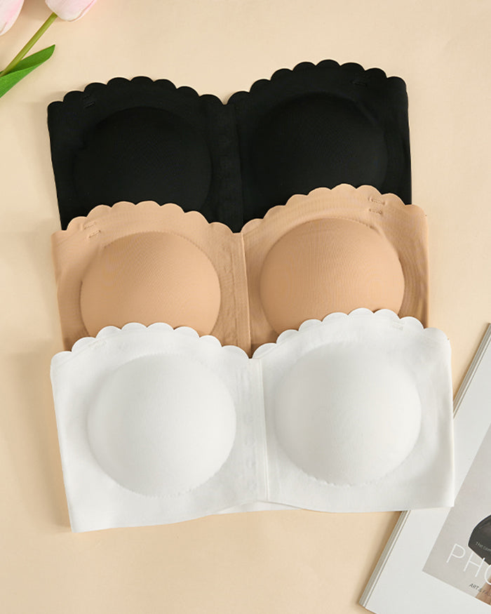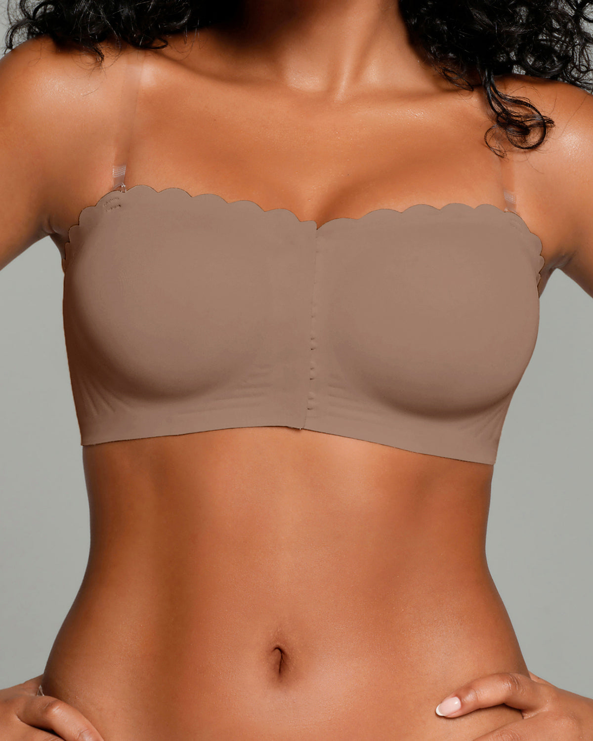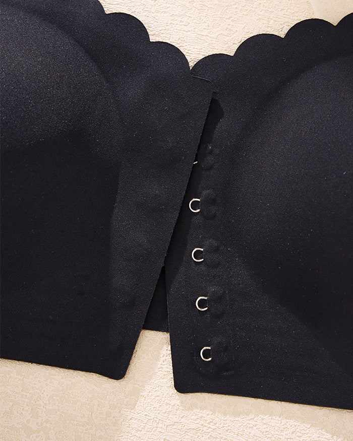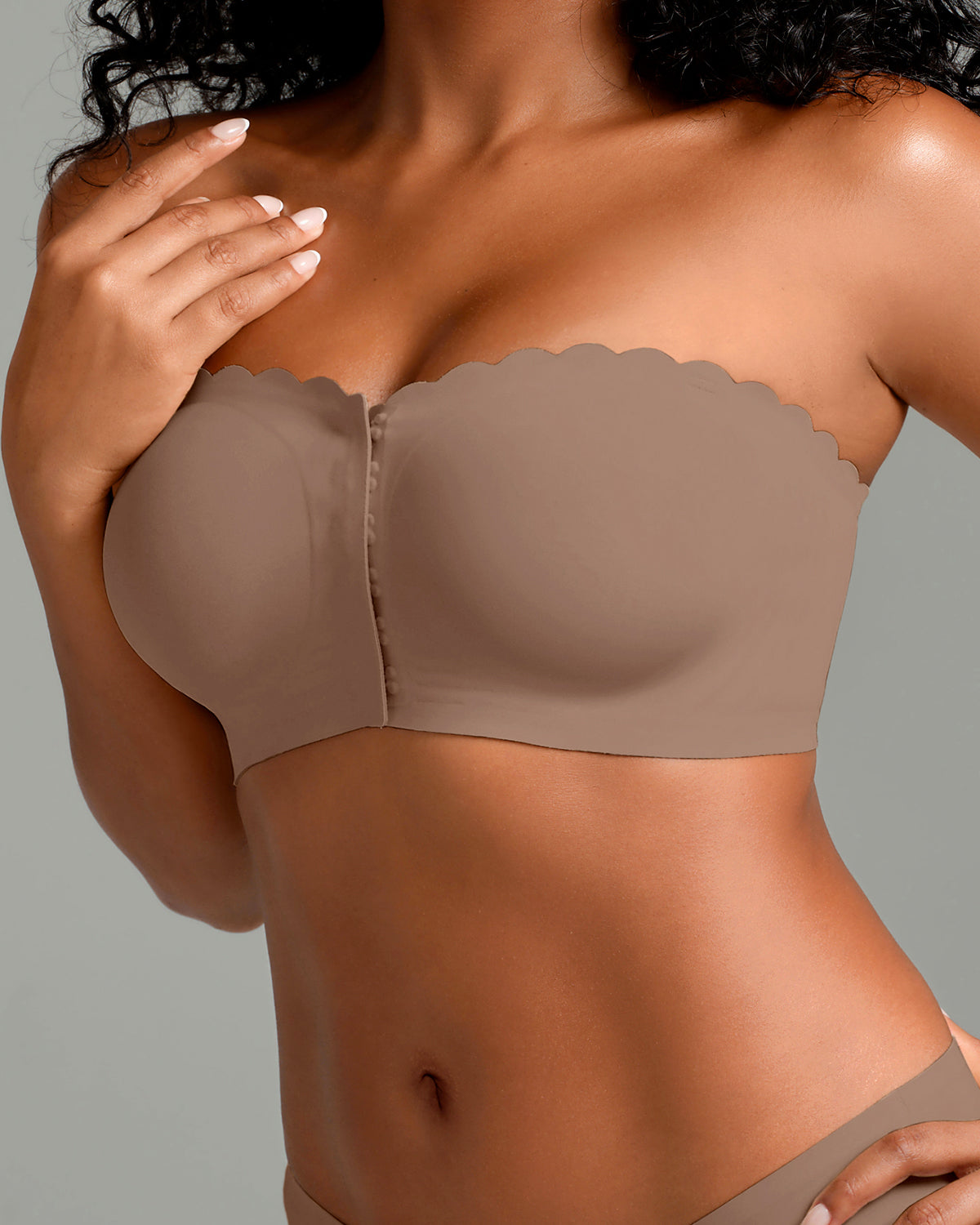 This bra features a convenient front closure for a hassle-free fit that reduces back strain. A non-slip silicone band ensures it stays securely in place. The wavy trim and strapless design beautifully showcase your shoulders and collarbones, making it stunningly sexy and appealing!