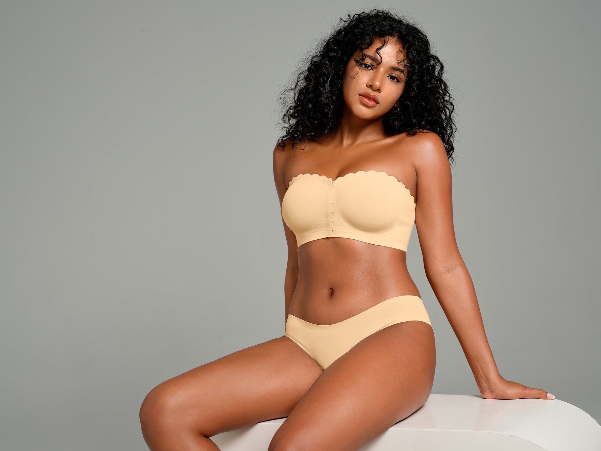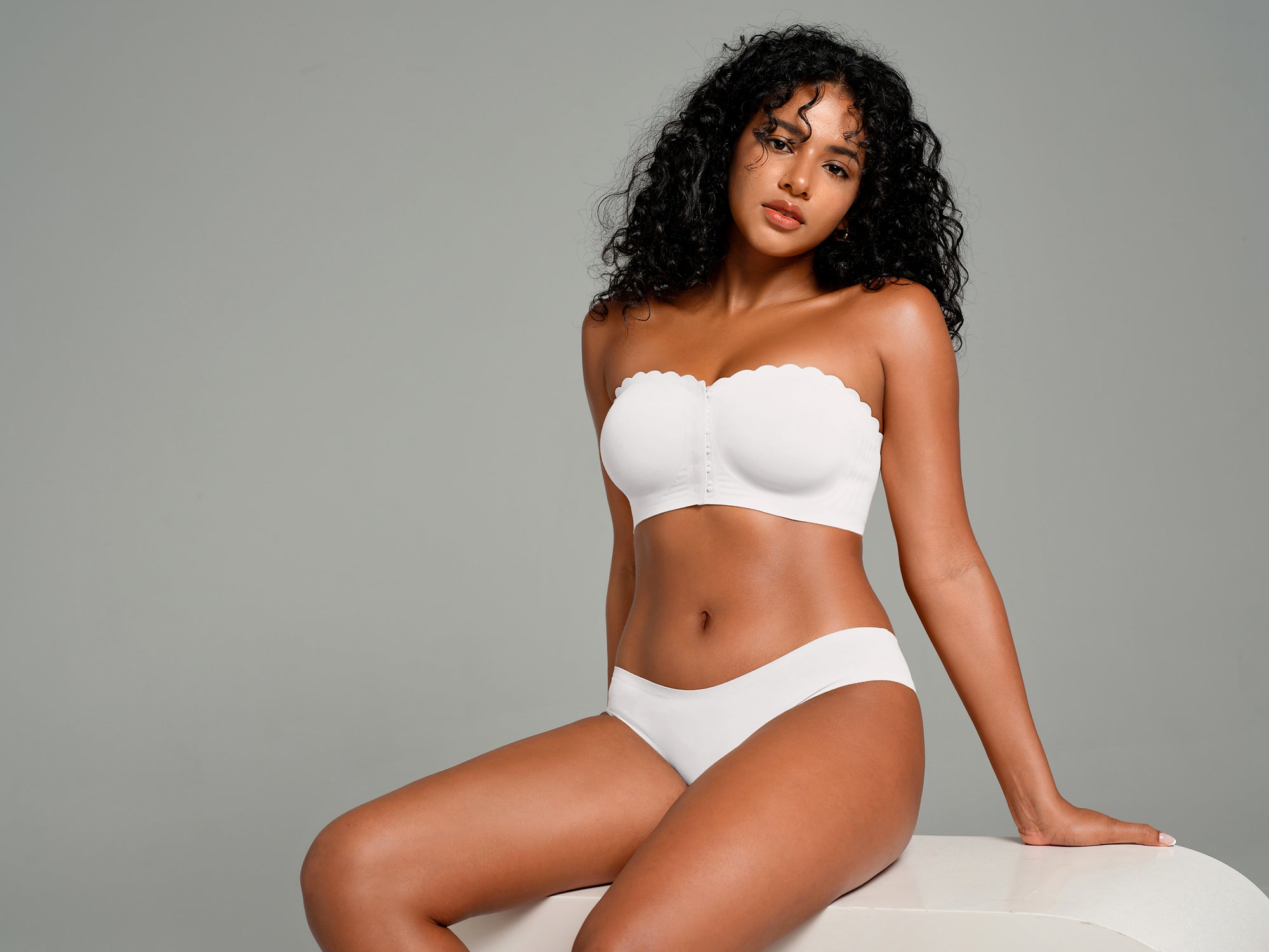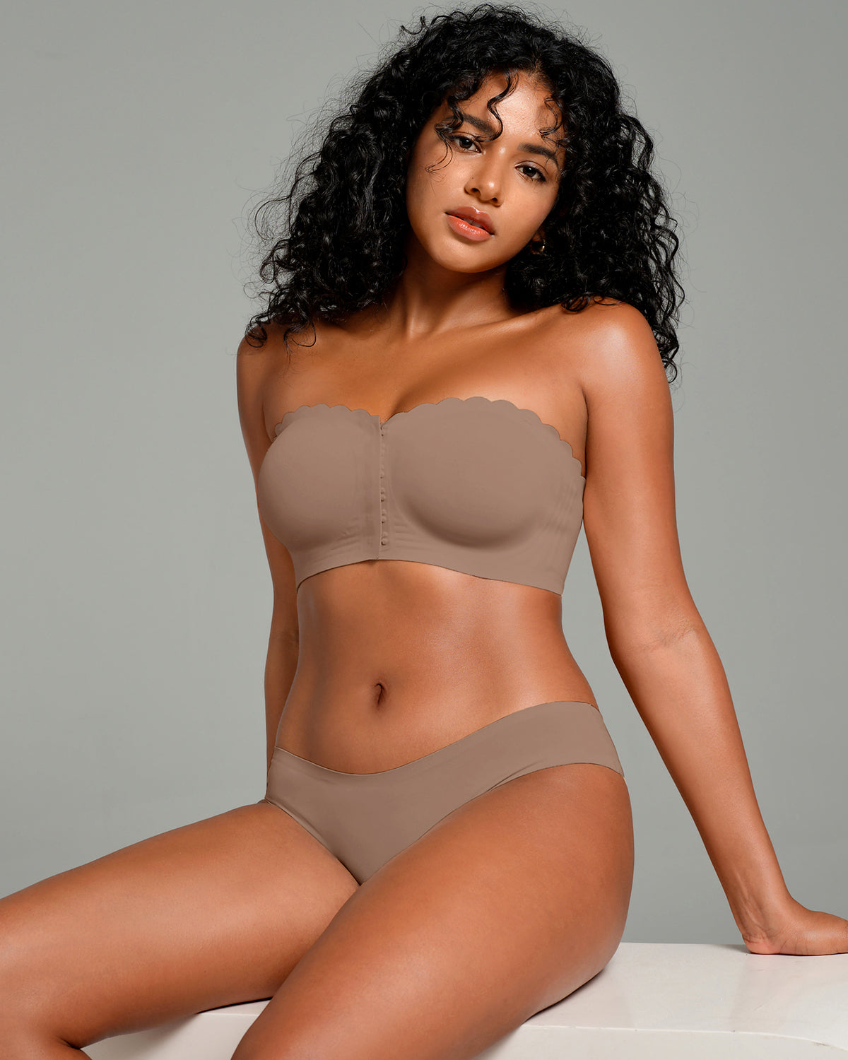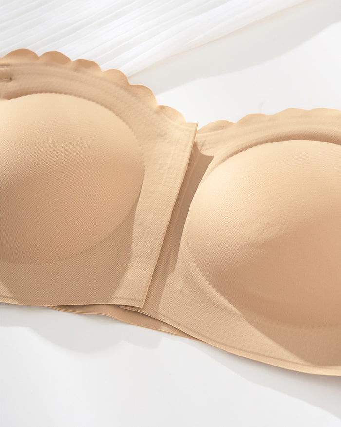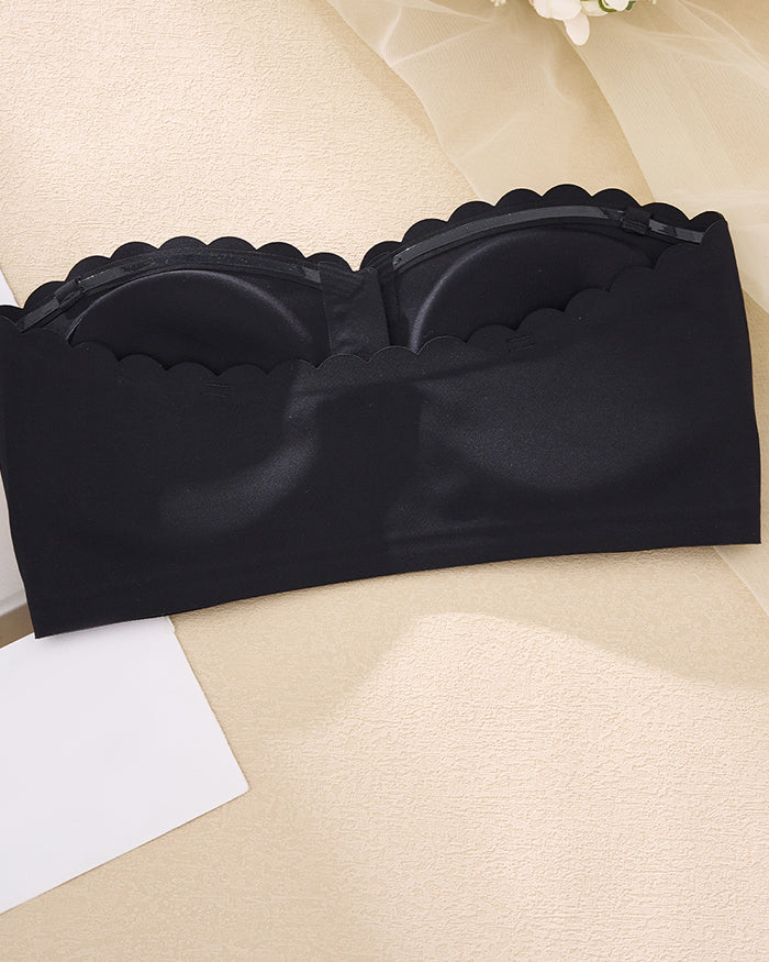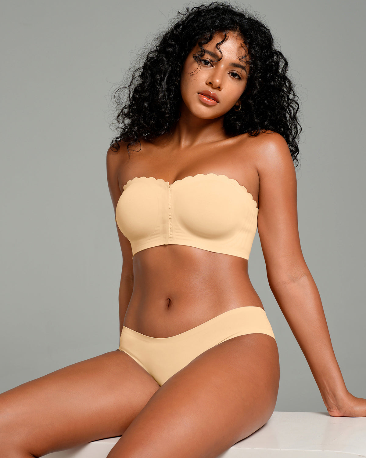 This bra features a convenient front closure for a hassle-free fit that reduces back strain. A non-slip silicone band ensures it stays securely in place. The wavy trim and strapless design beautifully showcase your shoulders and collarbones, making it stunningly sexy and appealing!