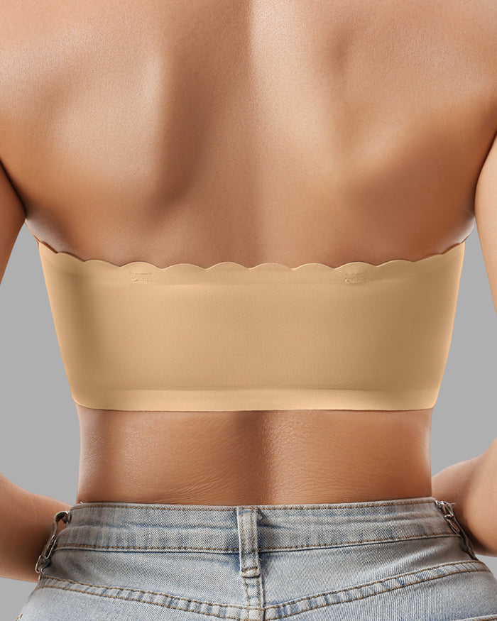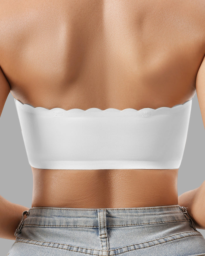 - No-slip silicone grip stays the bandeau bra in place and prevents it from slipping off,which also provides soft support.