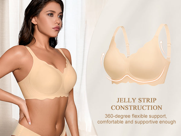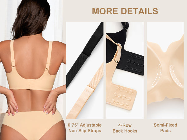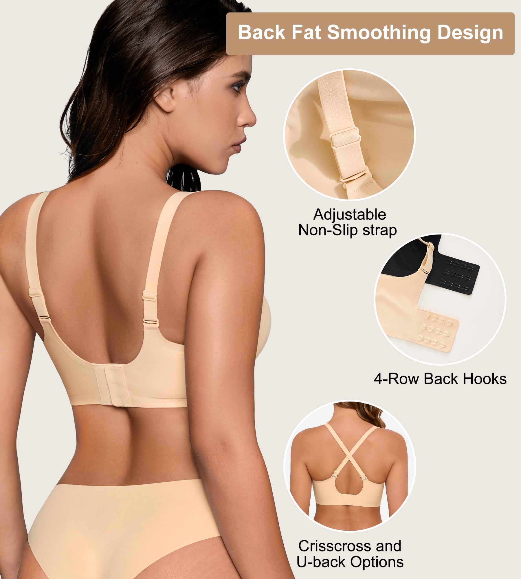 Our bra is designed with seamless craft, free of bulky seams & stiff stitches for all-day comfort.Its smooth and soft fabric hugs your curves effortlessly, offering a second-skin fit that moves with you.